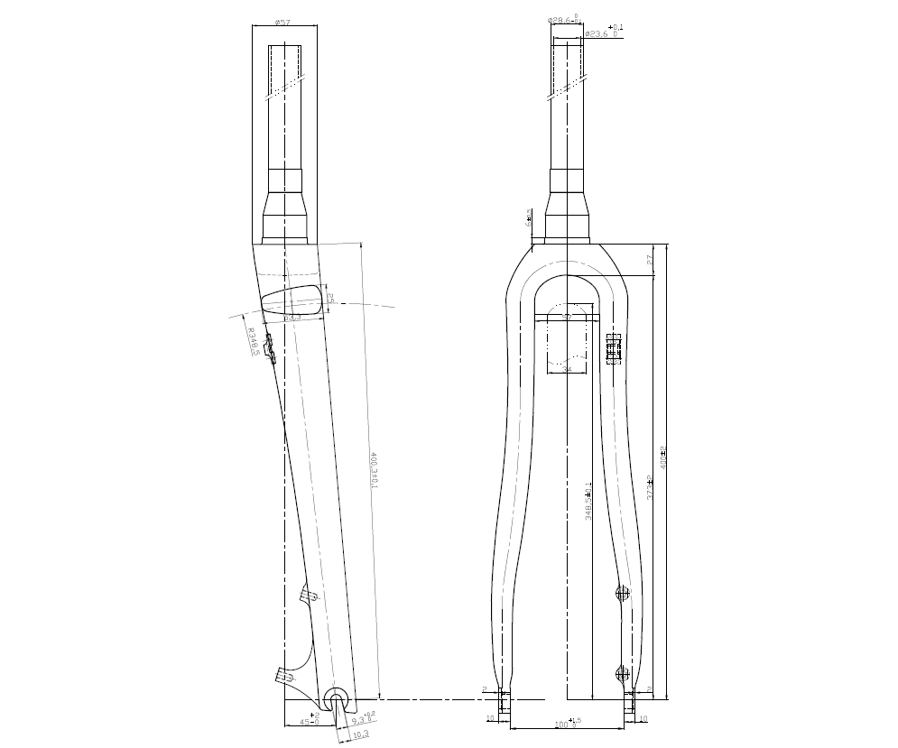 ™ carbon steerer. • Rake: 43/45mm • Steerer: 1 1/8" • Weight: 520g (300mm alloy steerer)
